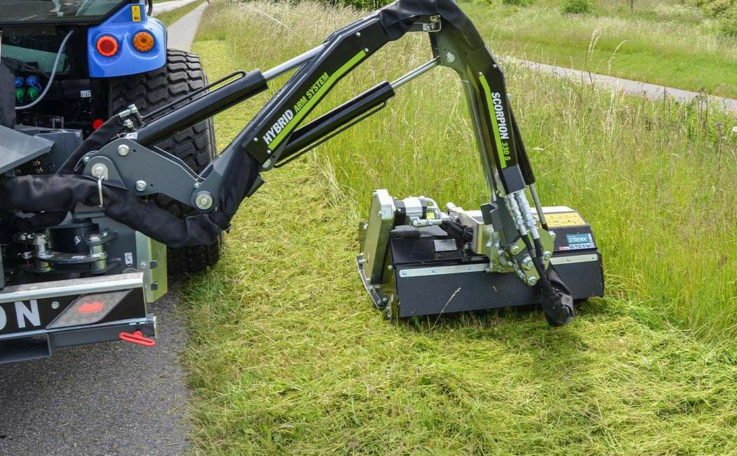 • SläntklippareSläntklippare från GreenTec Scorpion Släntklippare GreenTec Scorpion är en helt ny komplett serie av väg- och släntklippare som finns i många olika modeller med räckvidder från 3,3 m till 8,3 m. Släntklippararmen har ett nyutvecklat armsystem s.k. Hybrid Arm System som gör att armen antingen kan köras med eller utan parallellföring. GreenTec Scorpion erhöll Silvermedalj på Agritechnica 2019 för Innovationen Hybrid Arm System.