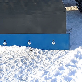 De fjäderbelastade klaffarna för slitstålen(skären) är en skyddsåtgärd för att skydda snöplogen för, för hög belastning. De ger med sig och vinklas bakåt vid för hög belastning. Klaffarna återgår sedan till sitt utgångsläge med hjälp av fjädrarna.