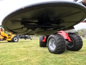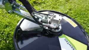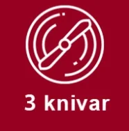 Gräset klipps med tre kraftigt sugande knivar som skyddas av en slittallrik vilken även förhindrar att knivarna slår i marken.