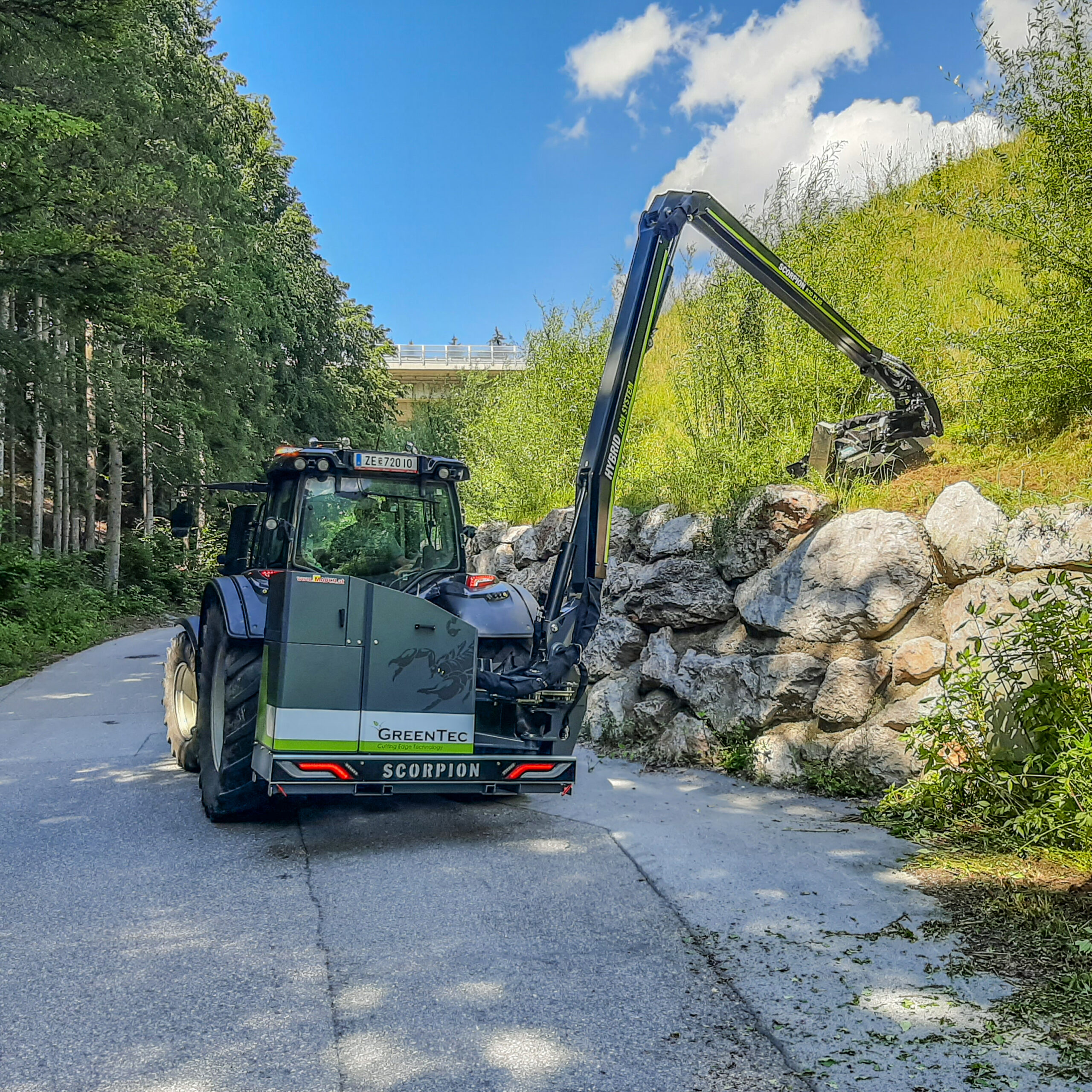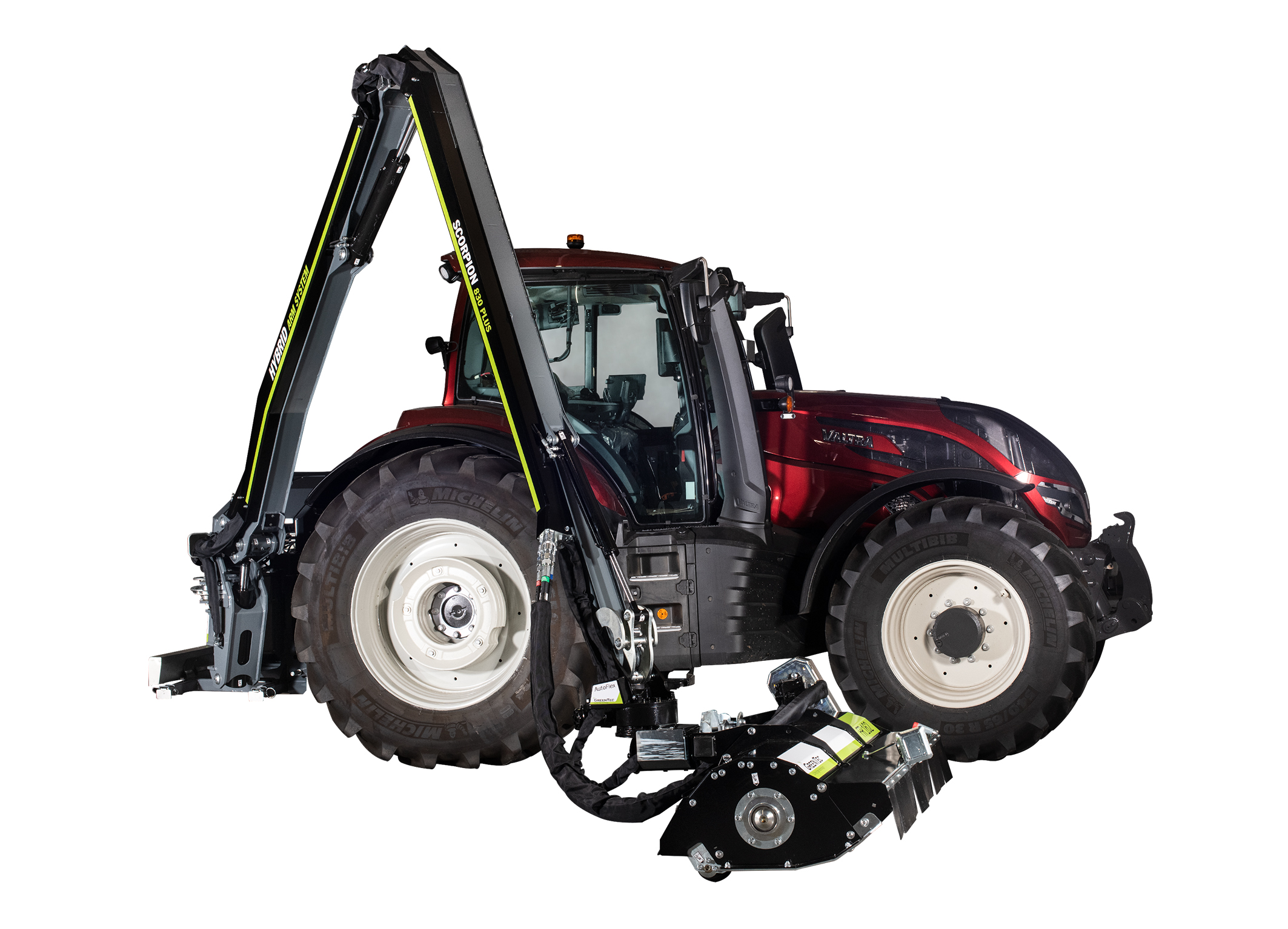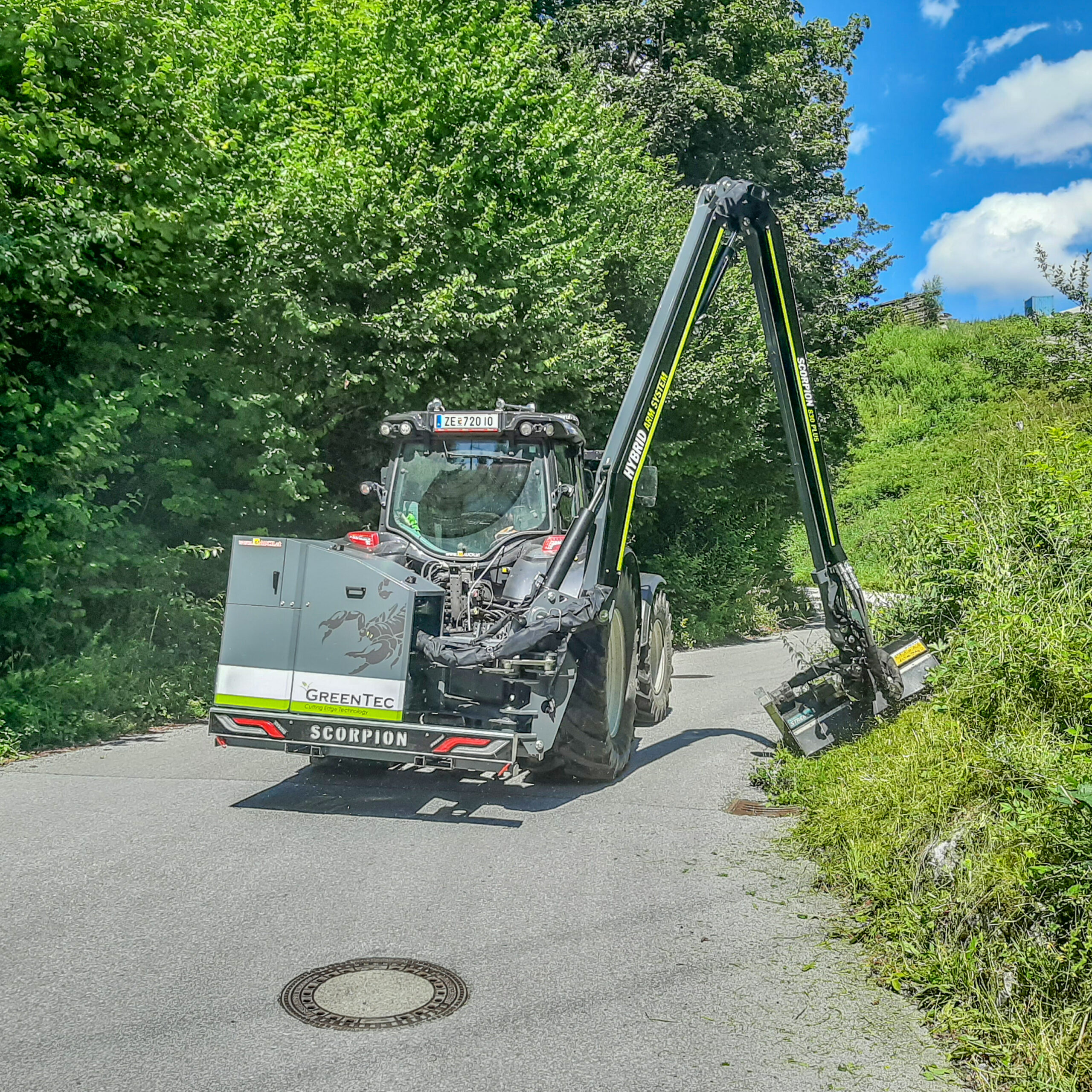 Alla modeller av GreenTec Scorpion kommer med Hybrid Arm System vilket innebär att armen kan styras både med och utan parallellarmfunktion. Val av funktion görs enkelt på maskinens manöverpanel i hytten. Med detta flexibla system kan de båda systemens fördelar utnyttjas i samma maskin beroende på vilket redskap som är monterat, vilket arbete som ska göras och om maskinens manöverförmåga begränsas av omgivningen. En annan fördel är att detta reducerar transportbredden och trafiksäkerheten ökar.