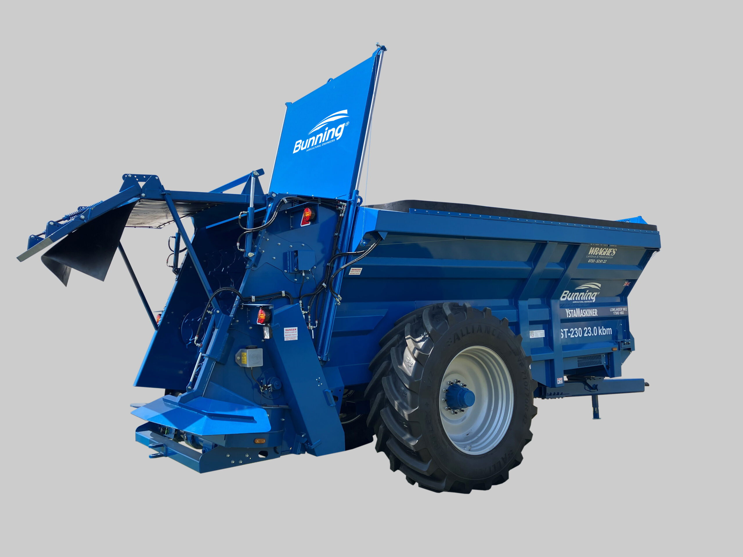 Stallgödselspridare Lowlander Mk2 HBD 2-stegs spridare är försedd med 2 st balanserade, liggande spridarvalsar. Kraftigt spridarbord med 2 st 1100 mm spridartallrikar och 1000 rpm. Invändig bredd är 1600-1830mm med 20mm bottenkedja (50 t brottlast/kedja), kraftigare drivlina och bredare rivarvalsar än Mk4 HBD med 60mm axlar. Medbringarna till bottenmattan är av s.k. “quick-fit”-typ och är inte fastsvetsade i kedjan, detta för att minska belastningen på kedjedreven.
