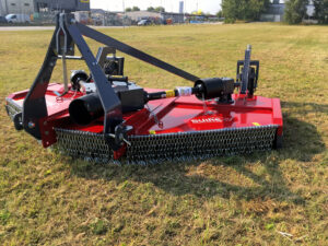 Rotorklipparen monteras bak i traktorns 3-punktsfäste (kat 2). Med hjälp av de stora bakre stödhjulen och den flytande toppstångsinfästningen ges en perfekt följsamhet under arbetets gång. Höjdjustering sker genom att sänka eller höja de bultbara släpmedarna. I framkant på maskinen är kedjeduk monterad för att minska risken av stenkast från knivarna.