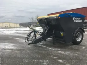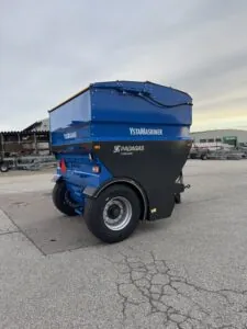 Bogserad sandspridare från Padagas med extra stor volym, 4000, 6000 och 9000 l, för spridning på stora ytor och långa avstånd. YSTA bogserade valsspridare är försedd med hjul och avsedd att dras av traktor samt drivs hydrauliskt. Spridaren har 2,24 m spridningsbredd och klarar av spridning av sand, salt och stenflis (0-40 mm).