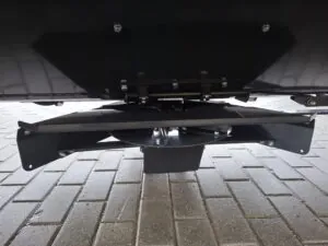 Sandspridare för torrt material. YSTA tallriksspridare drivs hydrauliskt och kan monteras med självlastande 3-punktsfäste