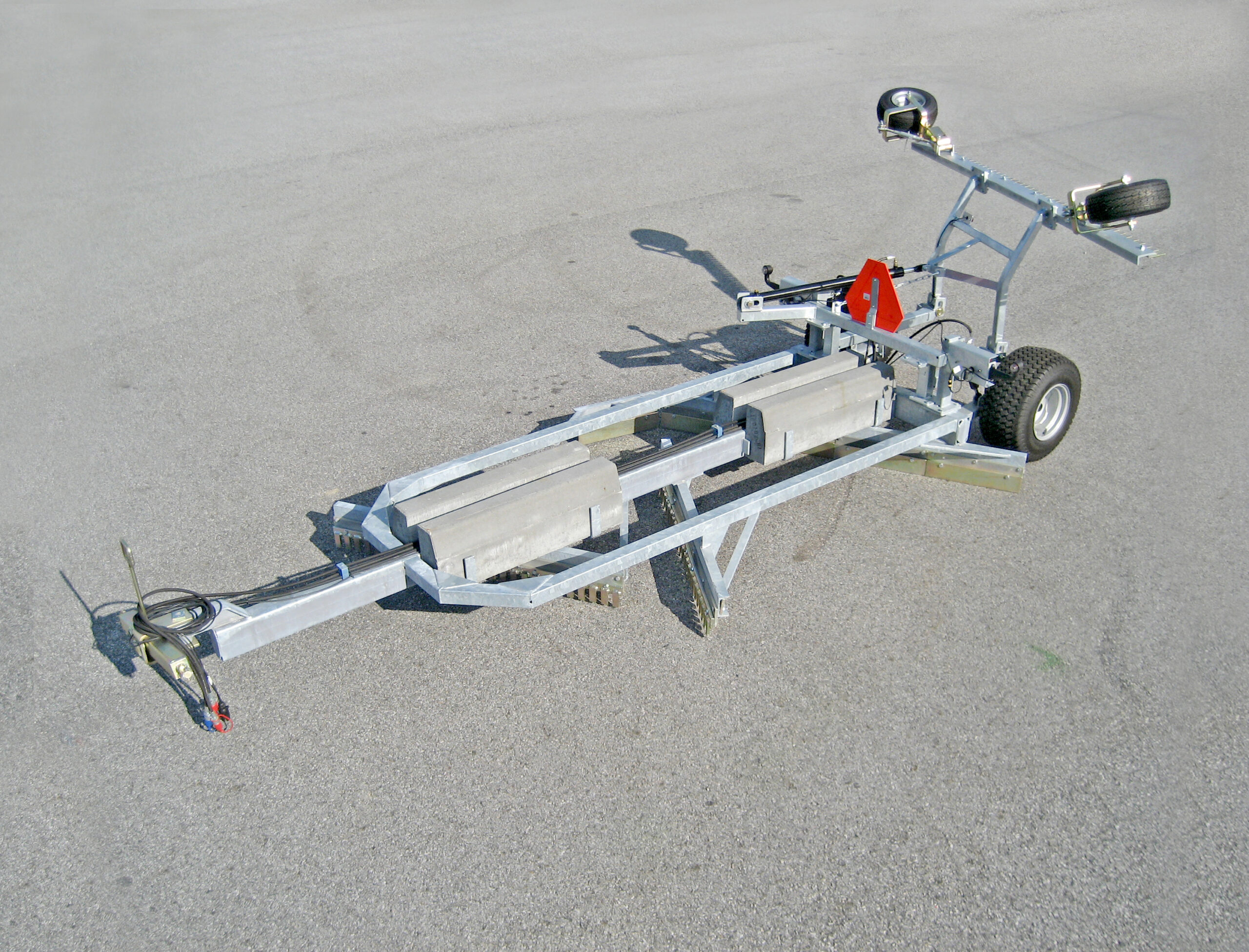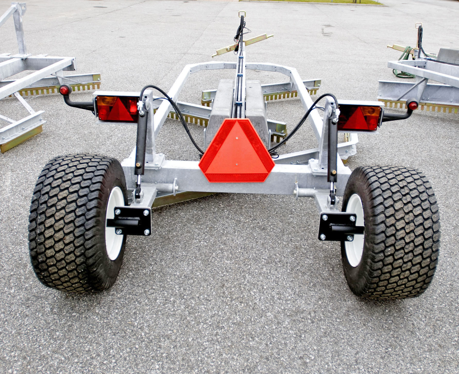 Monteras i traktorns lyftarmar (kat. 2) och bogseras på vägsladdens hjul vid transport. Dragbommen kan enkelt skiftas mekaniskt mellan 0 och 20 centimeters sidoförskjutning. Baklampor med bromsljus, blinkers och positionsljus samt ytterligare positionsljus på gummiarm ingår. 4 stycken betongvikter á 100 kg, som hjälper till att förbättra resultatet, är standard. Vägsladden kan extrautrustas med strängspridare som kräver 1 styck enkelverkande hydrauluttag vid uppfällning.