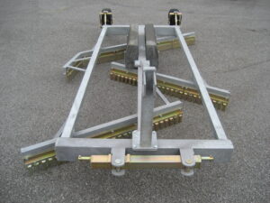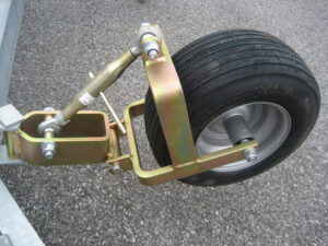 YVL 200/240 är försedd 2 robusta hjul som mekaniskt ställer in skärvinkeljustering och höjdjustering. Hjulen är stabiliserade i sidled vilket underlättar vid sladdning, transport och backning. Kan extrautrustas med 2 stycken hydrauliska cylindrar som kräver varsitt enkelverkande hydrauluttag.