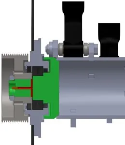 Hydralikmotorn driver rotorn via en Power Rem i stället för normalt med kedja som ger lägre omkostnader och ger högre säkerhet. Power Rem som är en hel bred rem som är starkare än flera enkla remmar. Konstruktionen medger också att remdrivningen kan monteras på både höger och vänster sida på slaghackshuvudet.