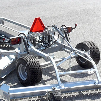 En vanlig vägsladd när skärvinkeljustering ska göras måste man först reglera höger hjul och sedan vänster hjul separat. På YVS 240 är skärvinkeljustering och höjdreglering separerat från varandra. Vid höjdreglering regleras båda hjul upp och ner parallellt. Skärvinkeljusteringen regleras separat hydrauliskt.
