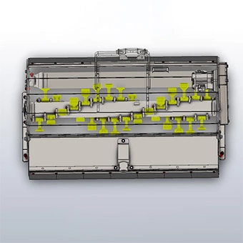 Den största fördelen är att några slagor alltid arbetar, vilket ger jämnare belastning, högre kapacitet, regelbundet flöde och låga underhållskostnader. Fördelen är att svetsämnena (hållare) som håller slagorna kopplas ihop med nästa slaga vilket innebär att hållarna som slagorna monteras blir mycket starkare.