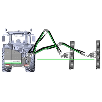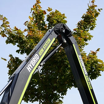 GreenTec har utvecklat ett eget hybridarmsystem för Scorpion som ökar flexibiliteten då armen kan köras med eller
